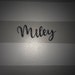 Custom laser cut wood script word sign.